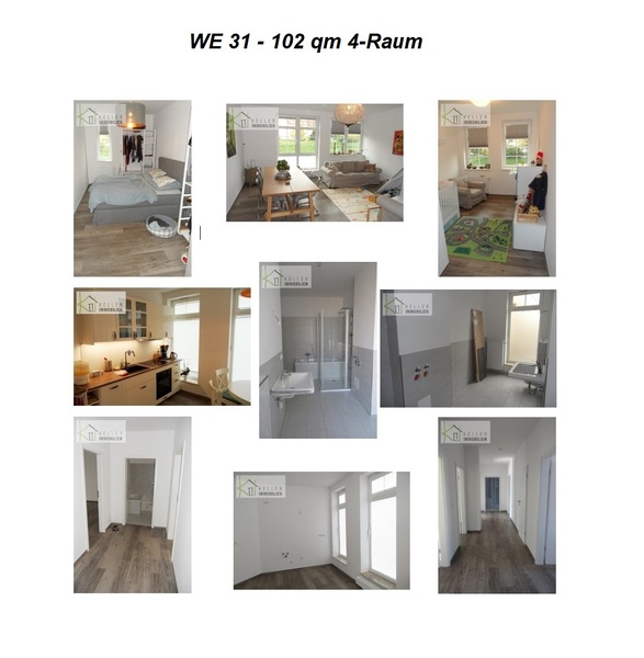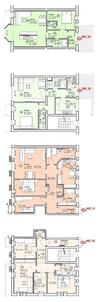 Größen: - WE 29: 61 qm, 2-Raum - WE 30: 70 qm, 2-Raum - WE 31: 102 qm, 4-Raum - WE 32: 72 qm, 3-Raum (gesamt: 305 qm)